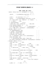 西师大版数学四年级下册第四单元测试卷(A)及答案