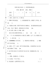最新苏教版五年级数学上册试卷1全程测评卷(全套)(附完整答案)