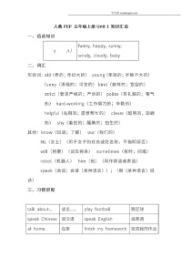 人教PEP版五年级下册英语Unit1知识点归纳及同步练习