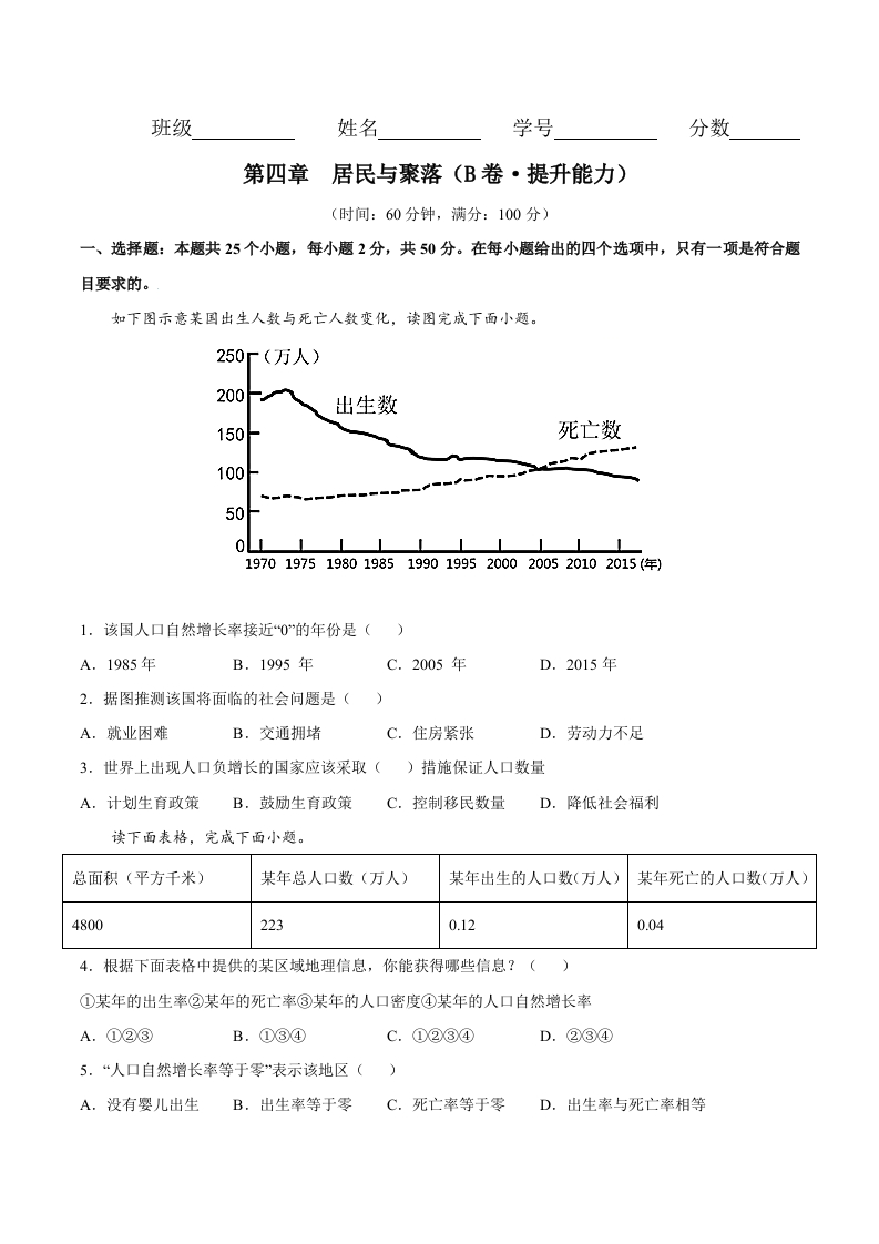 首页初中地理七年级第四章 居民与聚落(B卷提升能力)-七年级地理上册同步单元AB卷(人教版)(原卷版)