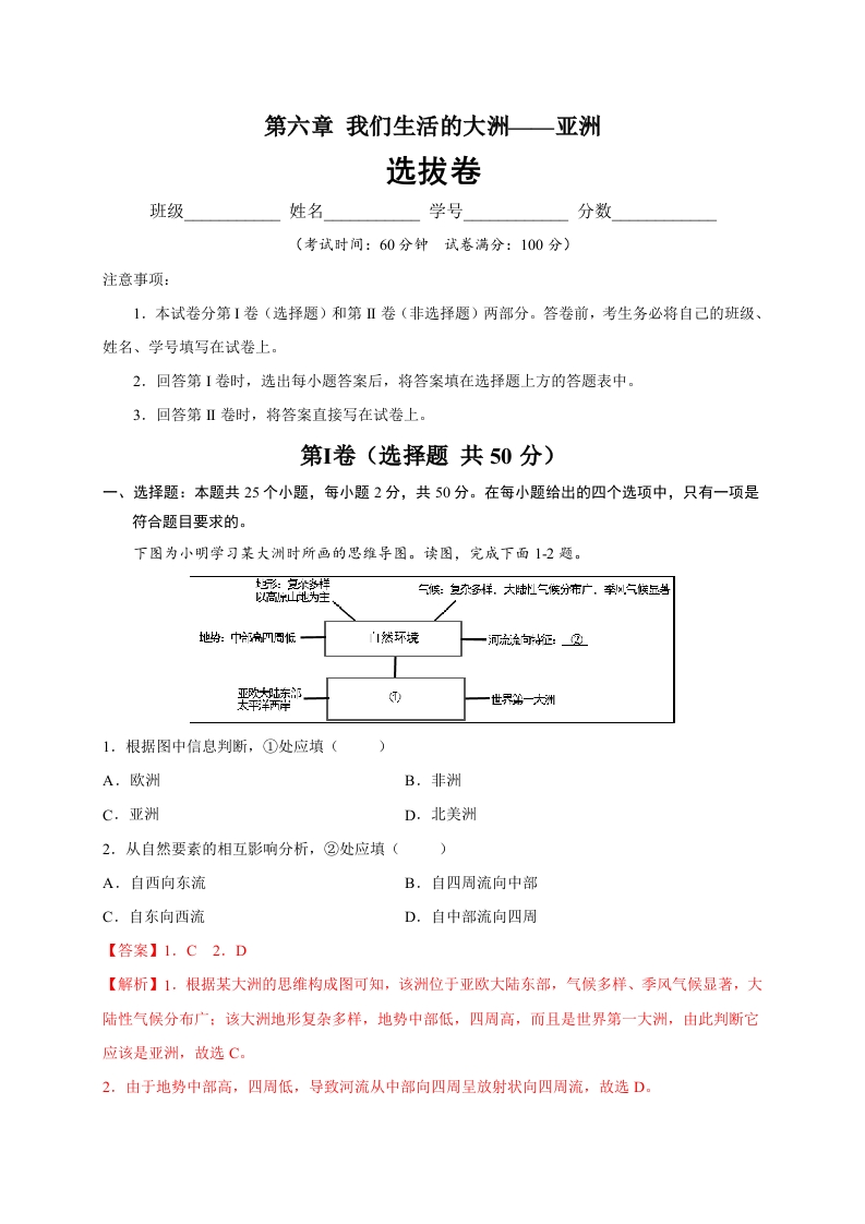 首页初中地理七年级第六章 我们生活的大洲——亚洲(选拔卷)-【单元测试】2021-2022学年七年级地理下册尖子生选拔卷(人教版)(解析版)