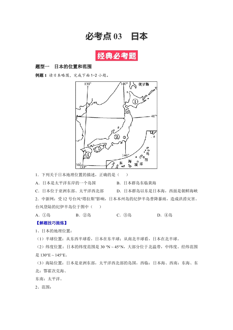首页初中地理七年级必考点03 日本-【对点变式题】(人教版)(原卷版)