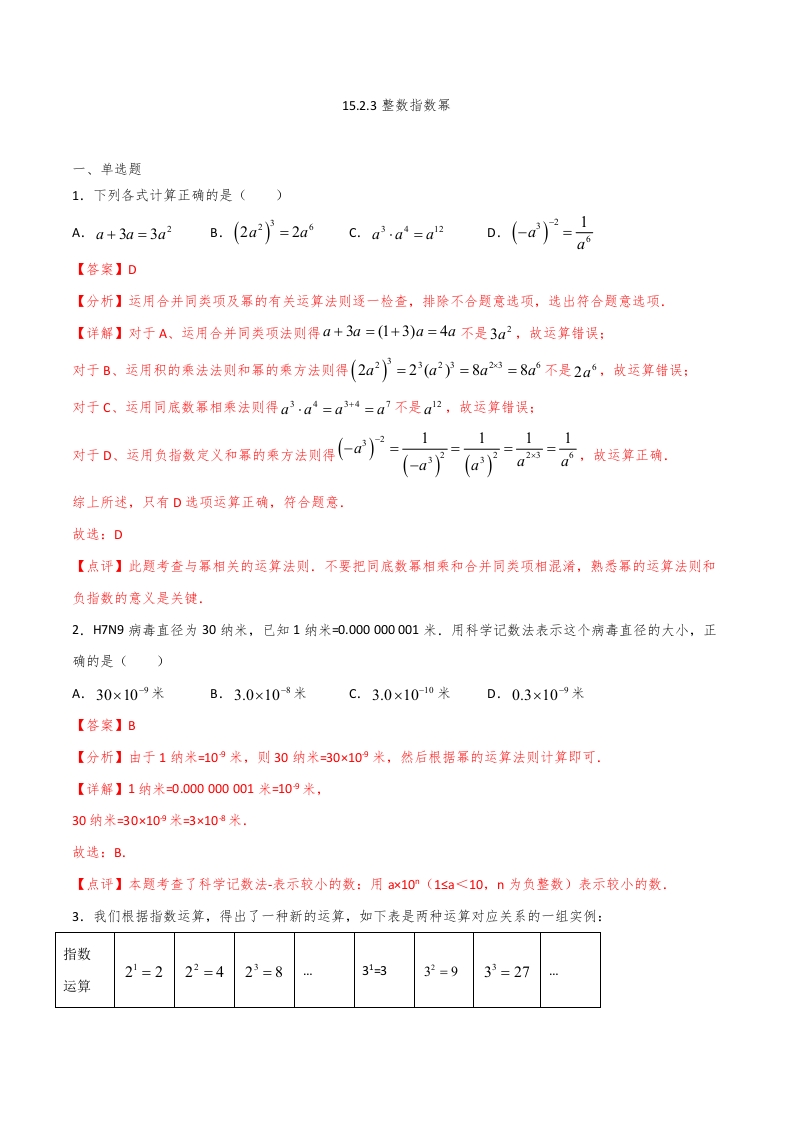 首页初中数学八年级八年级数学上册15.2.3整数指数幂(解析版)