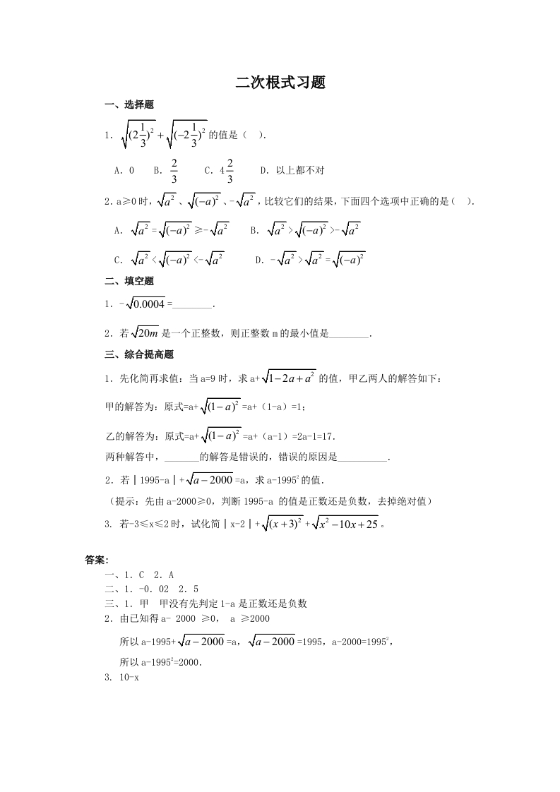 首页初中数学八年级八年级数学下册二次根式 同步练习2
