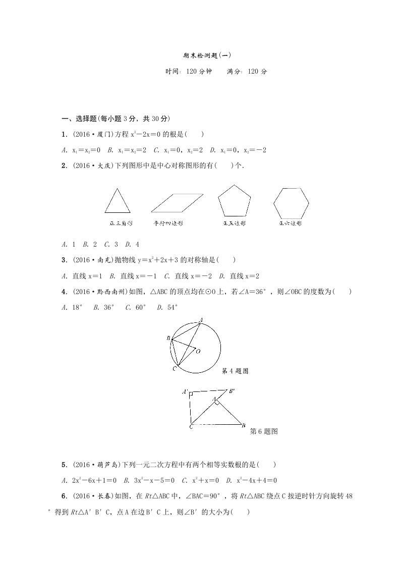 首页初中数学九年级【人教版】九年级上期末数学试卷5