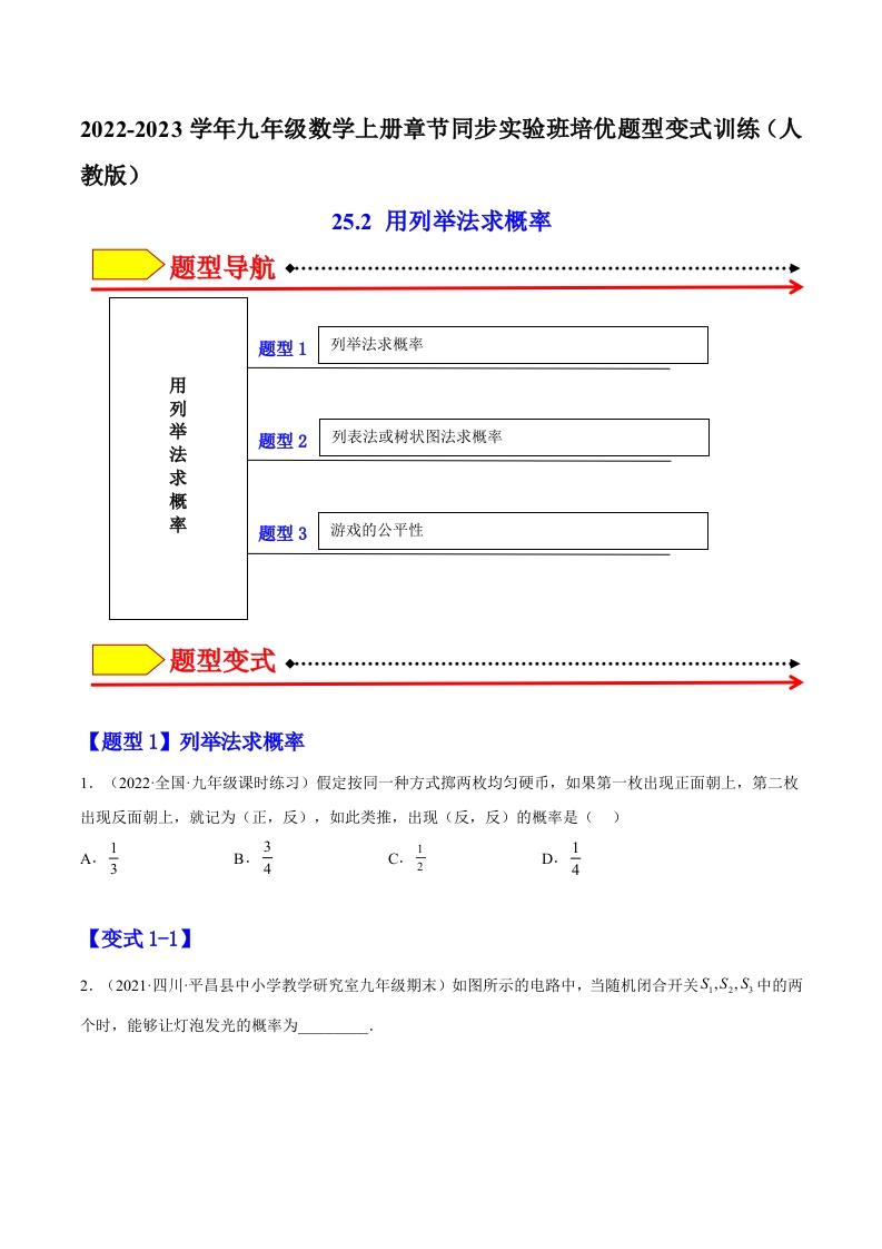 九年级上期末数学25.2 用列举法求概率(原卷版)
