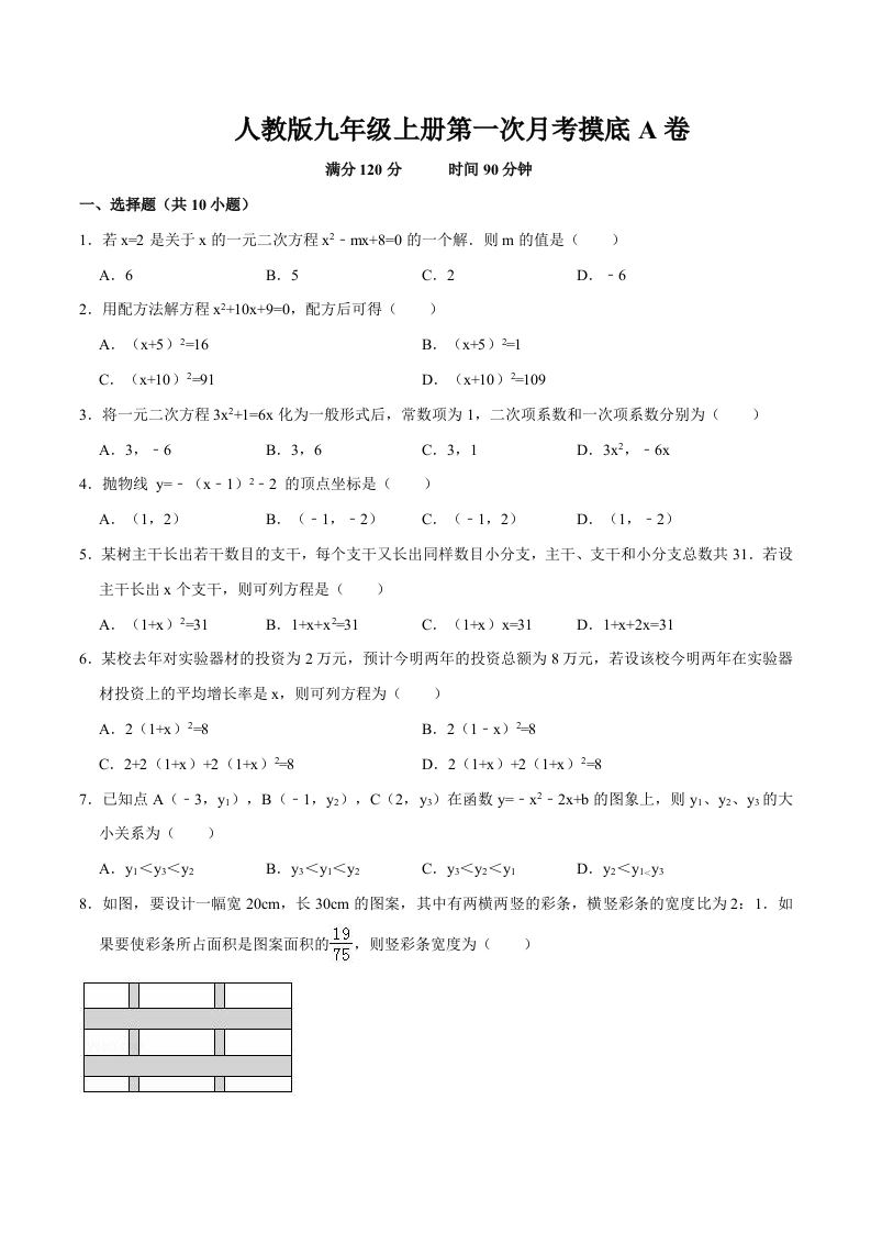 九年级数学上册第一次月考(10月份)摸底卷(人教版)(原卷版)