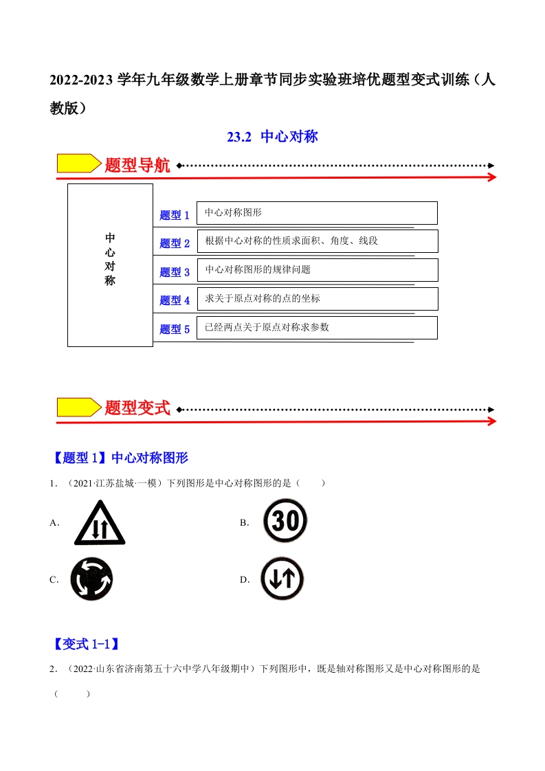 九年级上期末数学23.2 中心对称(原卷版)