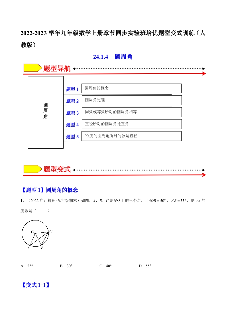 九年级上期末数学24.1.4 圆周角(原卷版)