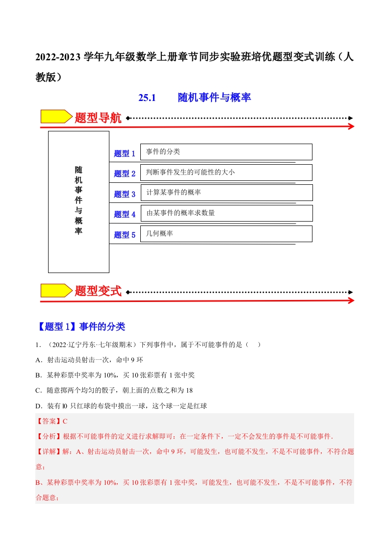 九年级上期末数学25.1 随机事件与概率(解析版)