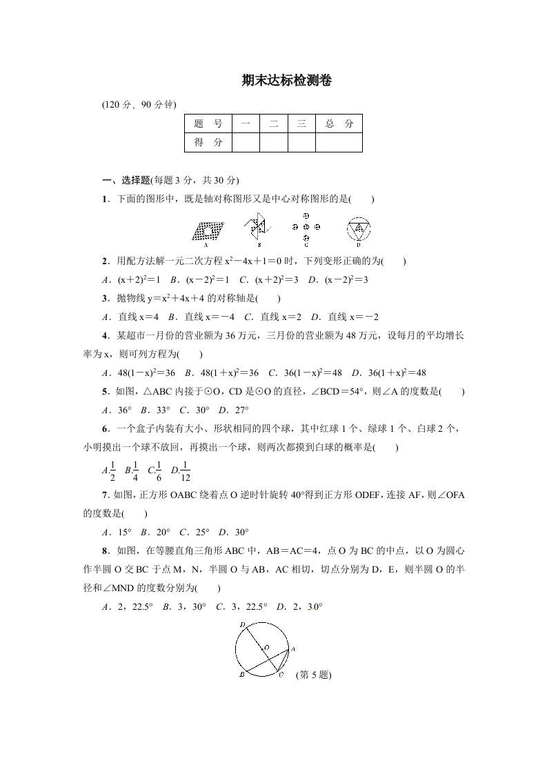 首页初中数学九年级【人教版】九年级上期末数学试卷4