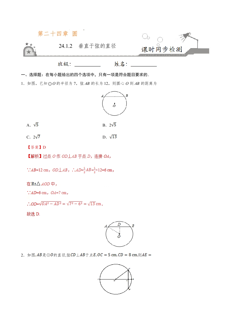 24.1.2 垂直于弦的直径-九年级数学人教版(上)(解析版)
