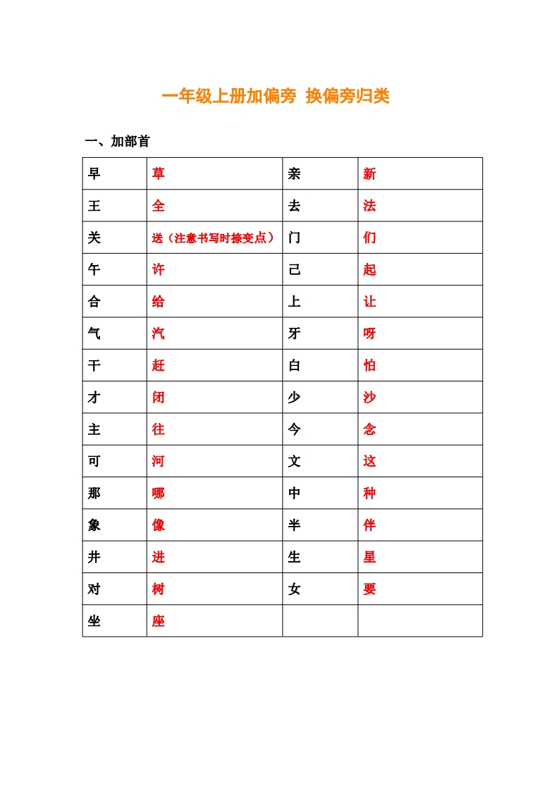 小学语文部编一年级上册、加偏旁换偏旁归类