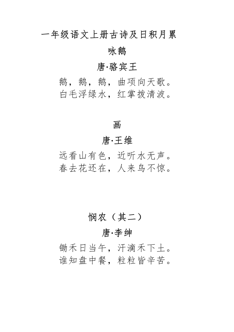 首页小学英语一年级一(上)语文古诗词日积月累汇总(1)