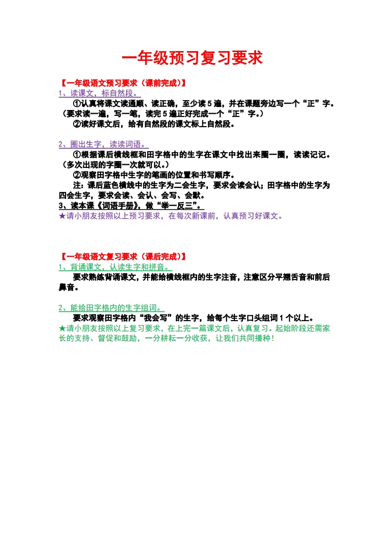 首页小学英语一年级一年级上册语文-预习、复习要求家长必看