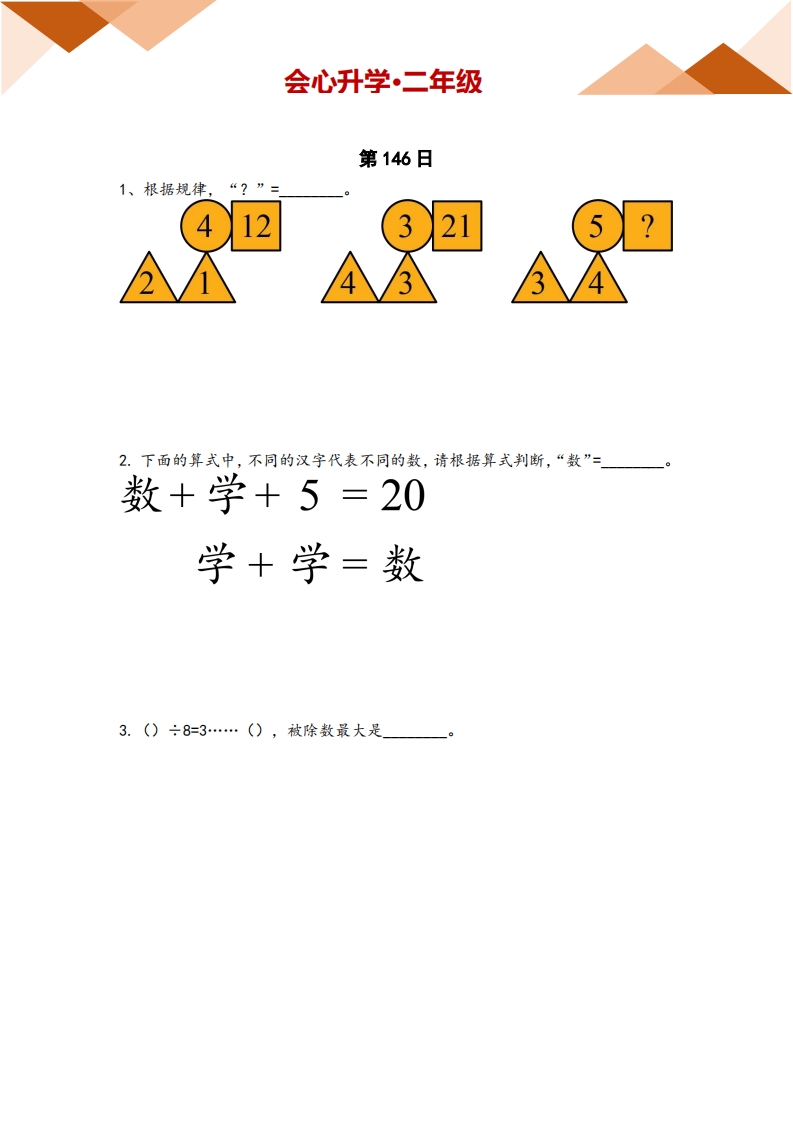 首页小学数学二年级第146日习题_mbmdygpj14nw