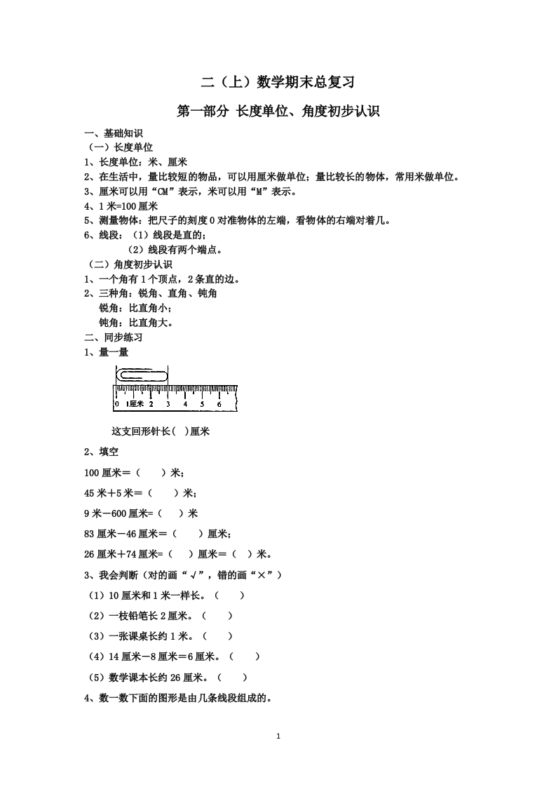 二年级上册数学期末总复习