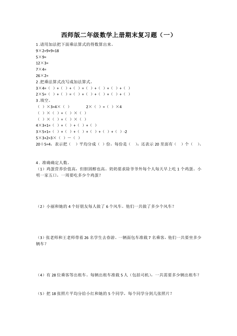 首页小学数学二年级西师版二年级数学上册期末复习题