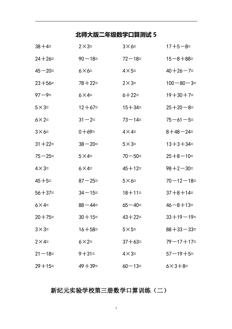 首页小学数学二年级2024:新北师大版小学数学2年级下册口算 (6)