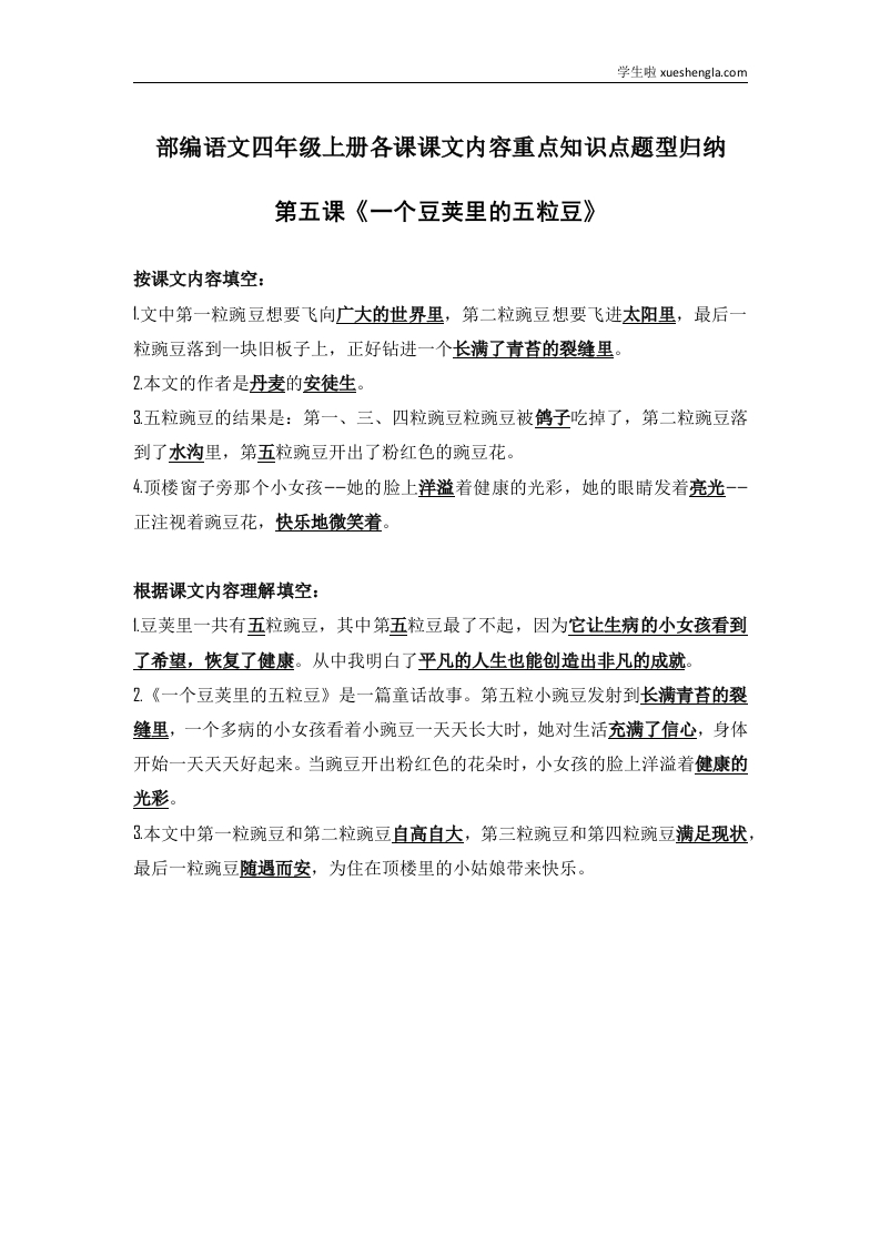 部编语文四年级上册第5课课文内容重点知识点题型归纳