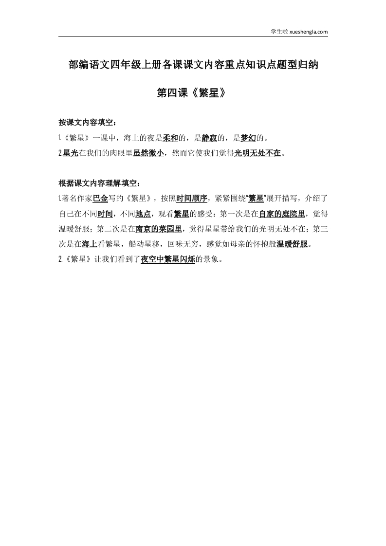 部编语文四年级上册第4课课文内容重点知识点题型归纳