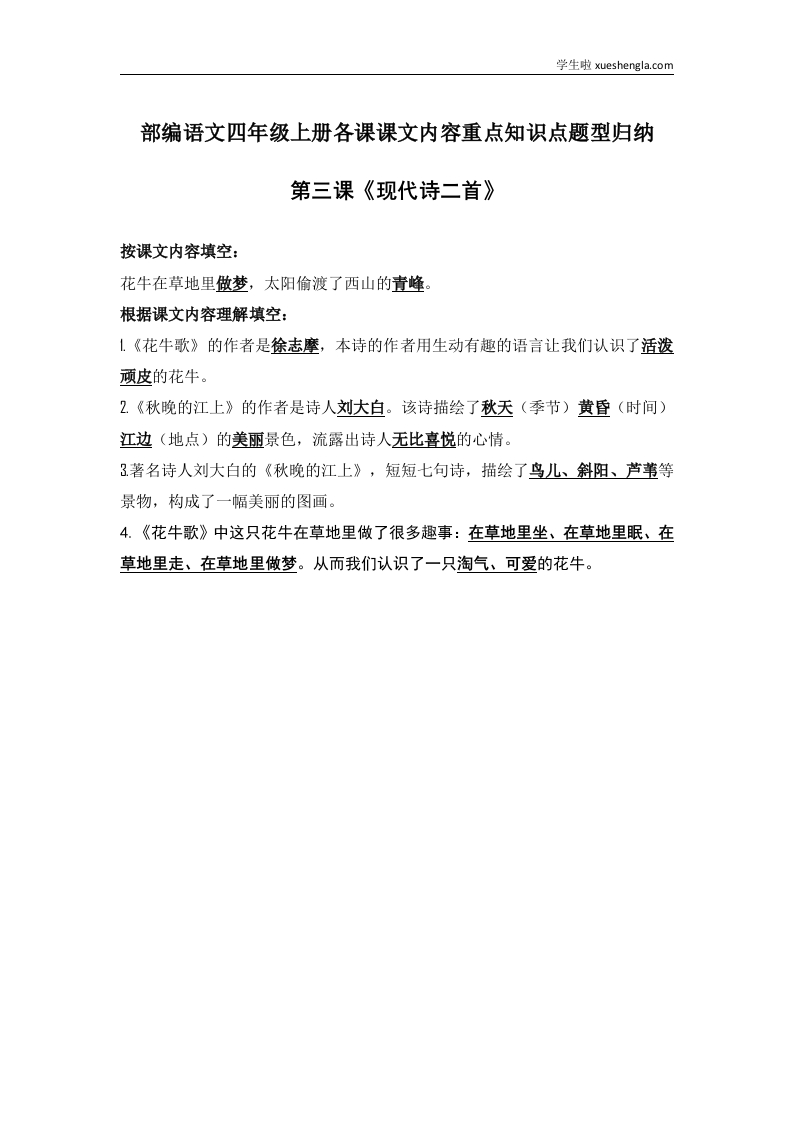 部编语文四年级上册第3课课文内容重点知识点题型归纳