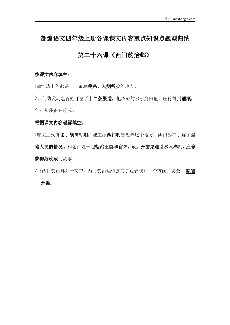 部编语文四年级上册第26课课文内容重点知识点题型归纳