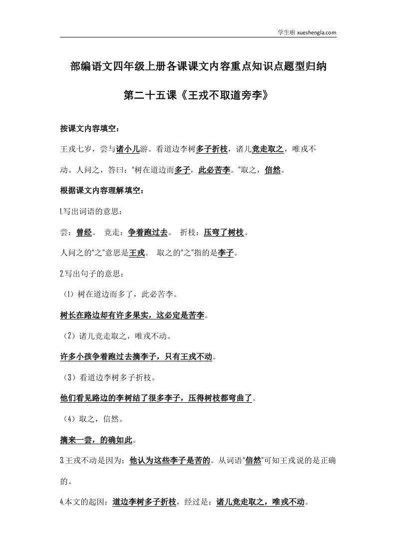 部编语文四年级上册第25课课文内容重点知识点题型归纳