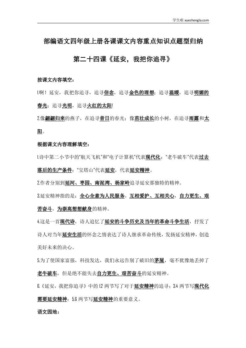 部编语文四年级上册第24课课文内容重点知识点题型归纳