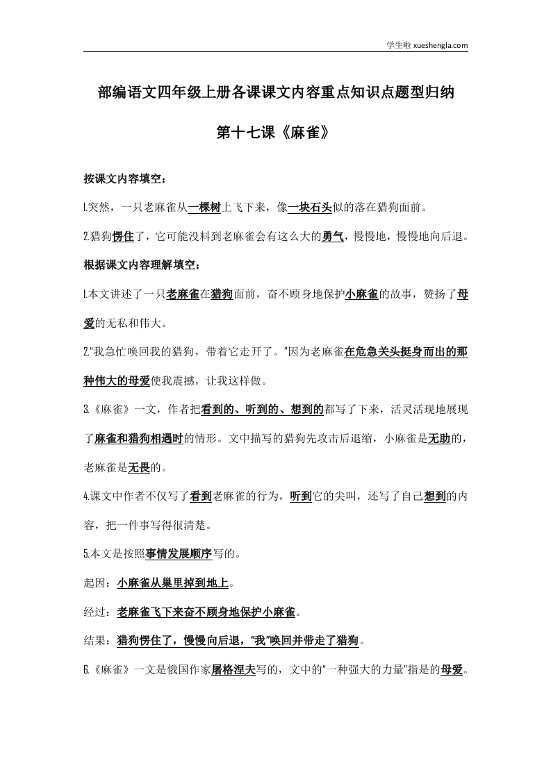 部编语文四年级上册第17课课文内容重点知识点题型归纳