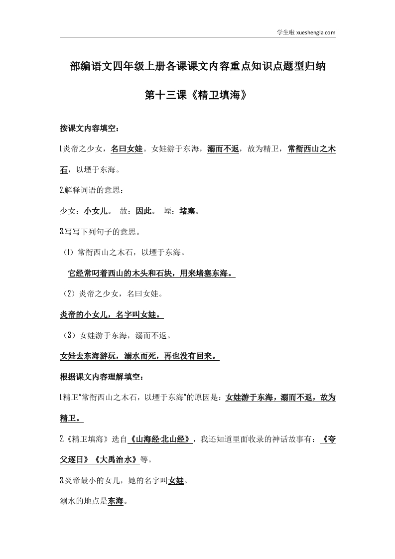 部编语文四年级上册第13课课文内容重点知识点题型归纳