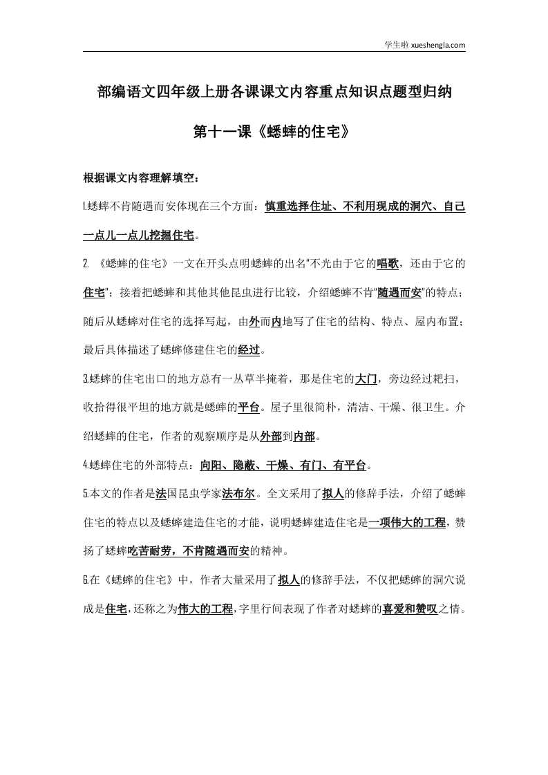 部编语文四年级上册第11课课文内容重点知识点题型归纳
