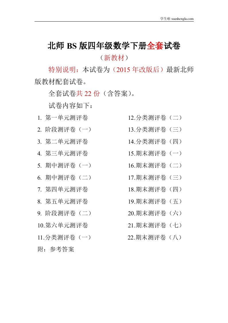 首页小学数学四年级北师大版四年级数学下册全套试卷(22套附完整答案)