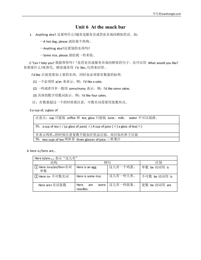 首页小学英语四年级译林版四年级上 Unit6 知识点梳理