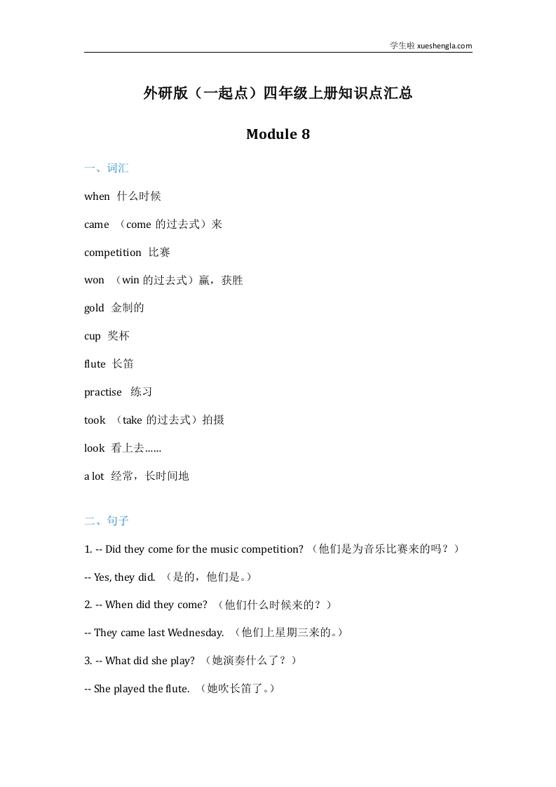 首页小学英语四年级外研版(一起点)英语四年级上册Module8知识点
