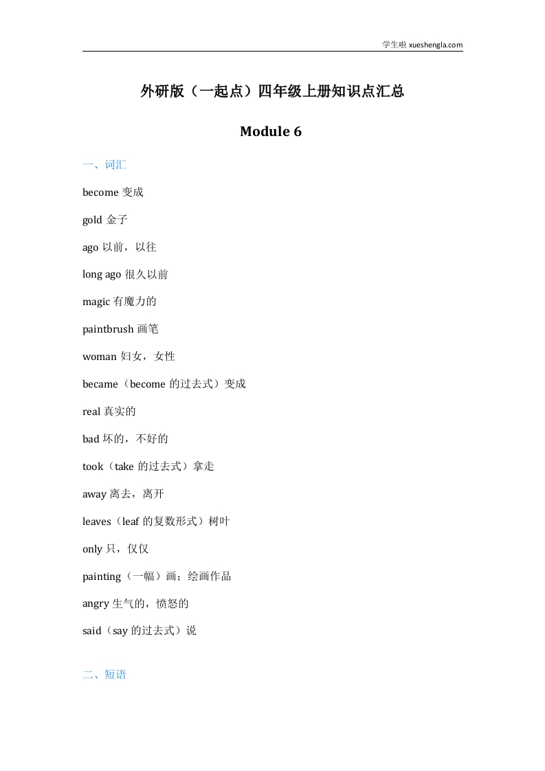 首页小学英语四年级外研版(一起点)英语四年级上册Module6知识点