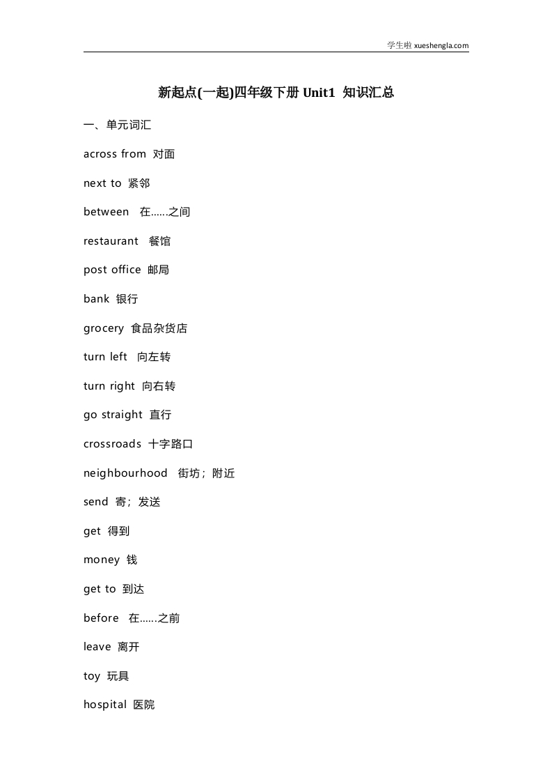首页小学英语四年级人教新起点英语四年级下册Unit1知识点汇总
