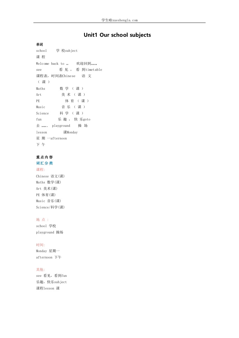 首页小学英语四年级译林版四年级下 Unit1 知识点梳理