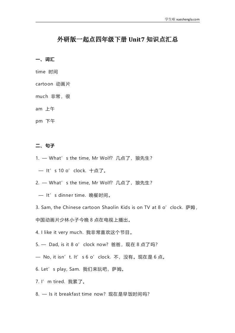 首页小学英语四年级外研版一起点四年级下册Unit 7知识点汇总