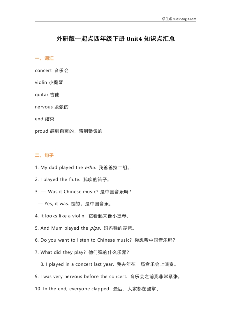 首页小学英语四年级外研版一起点四年级下册Unit 4知识点汇总