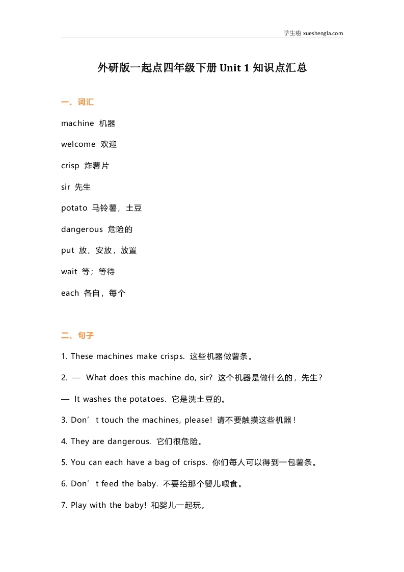 首页小学英语四年级外研版一起点四年级下册Unit 1知识点汇总