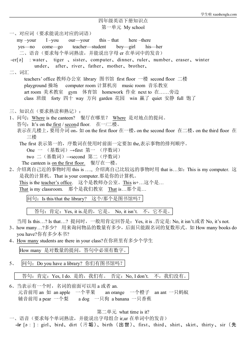 人教版四年级英语下册知识点总结(非常有用)