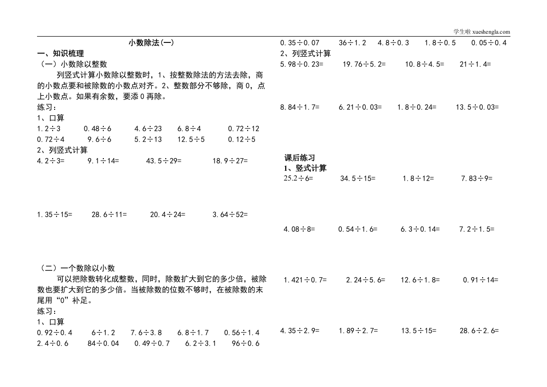首页小学数学五年级西师版五年级数学上册小数除法练习题2套[1]
