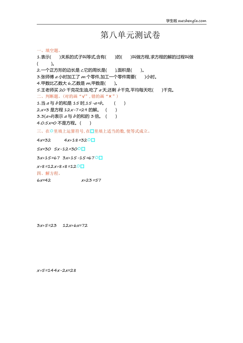 首页小学数学五年级冀教版数学五年级上册第八单元测试卷及答案