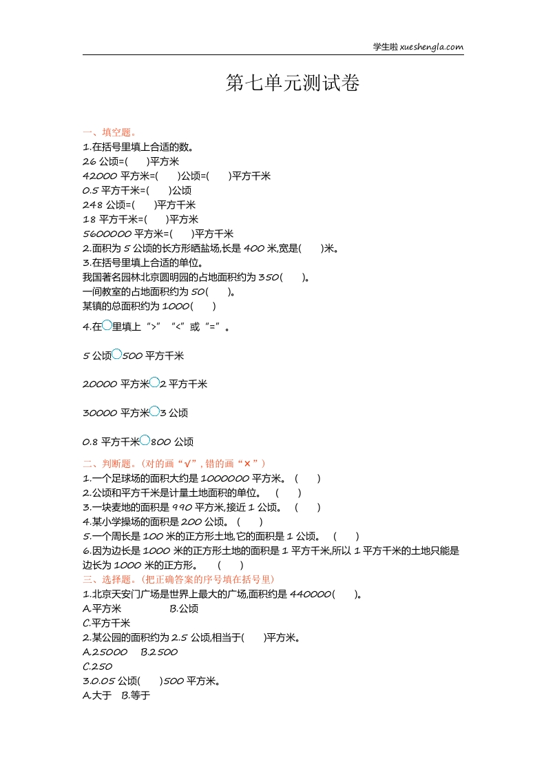 首页小学数学五年级冀教版数学五年级上册第七单元测试卷及答案