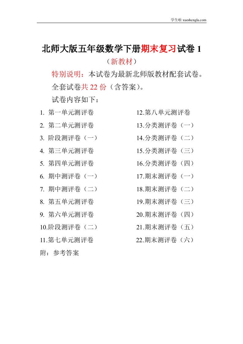 首页小学数学五年级北师大版五年级数学下册全套试卷(22套附完整答案)