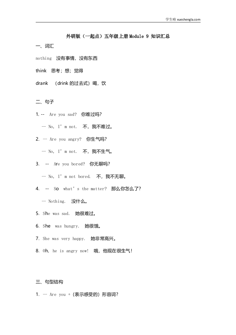 首页小学英语五年级外研版一起点五年级上册Module9知识点汇总