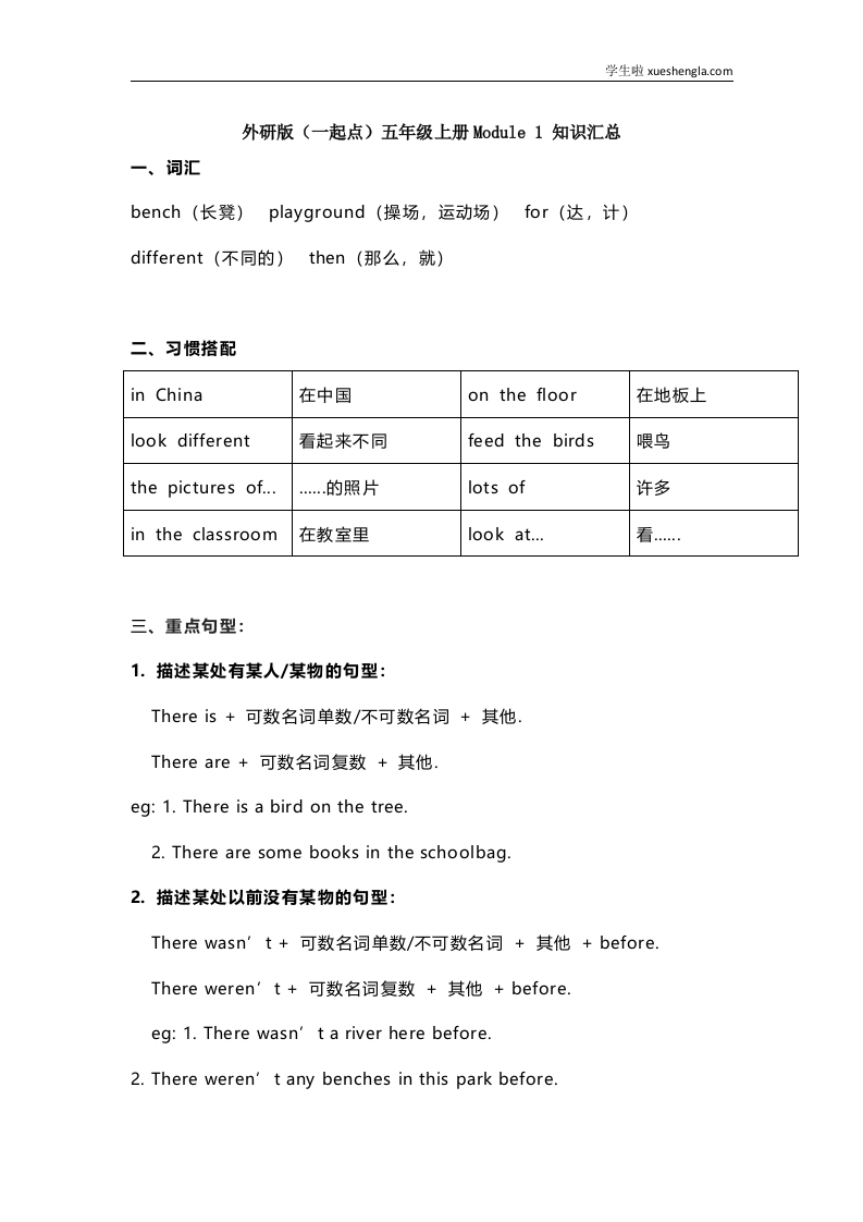 首页小学英语五年级外研版一起点五年级上册Module1知识点汇总