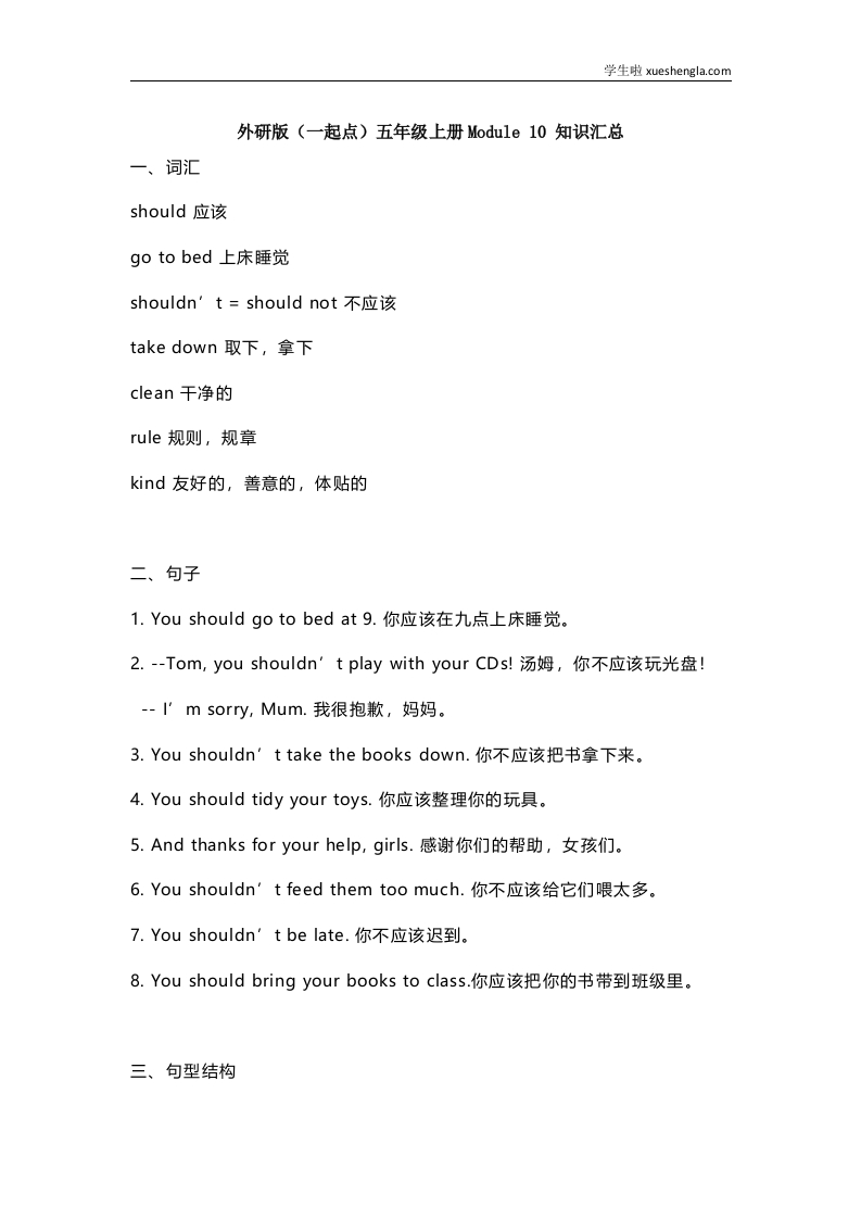 外研版一起点五年级上册Module10知识点汇总