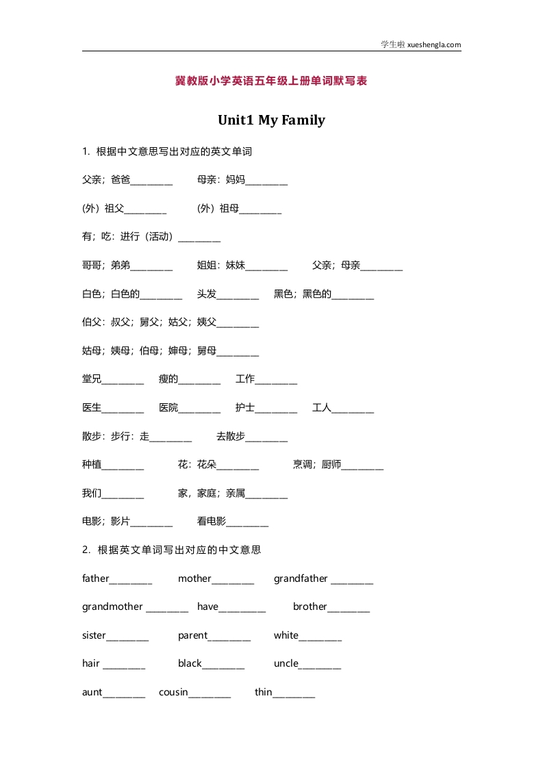 首页小学英语五年级冀教版小学英语五年级上册单词默写表